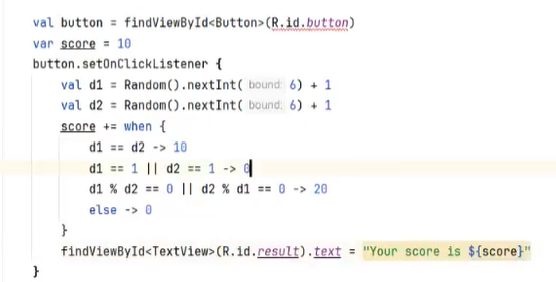findViewById<TextView>(R.id.result).text = "Your score is ${score}"