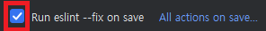Run eslint --fix on save를 체크한다.eslint --fix를 실행하여 lint rule에 맞게 linting을 수행한다.
