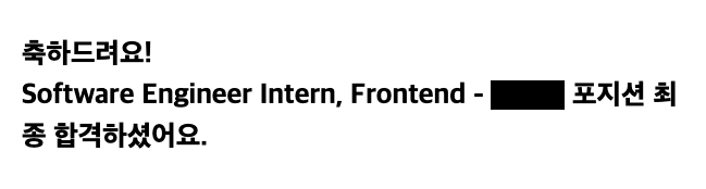 사실 직무 면접과 라이브 코딩 테스트를 전혀 잘봤다고 생각하지 않았기에, 최종 합격 사실이 믿겨지지 않았다. 후에 내 면접에 들어오신 팀원 분이 말씀해주시길 "특정 기능을 구현하는 과정이 가장 현업자스러웠다" 라고 말씀해주셨던 것이 기억에 남는다. 그 말을 듣고 정말 뿌듯했던 기억이.. 있다.