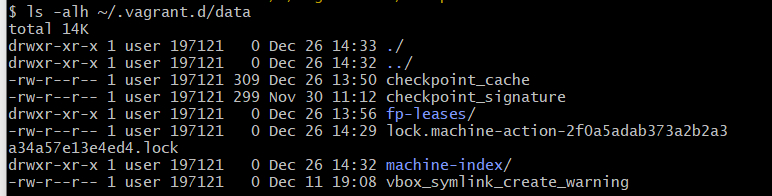 ls -alh ~/.vagrant.d/data CMD를 써보라고 해서 써봤는데 그냥 내부 파일을 보여주는 커맨드였음