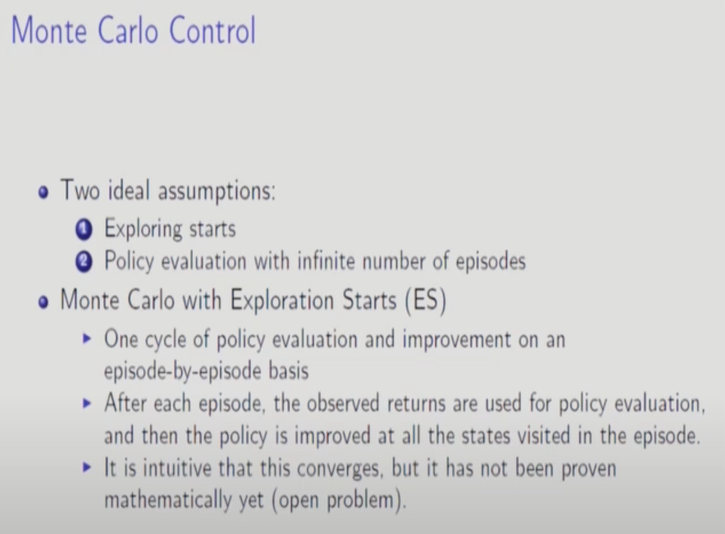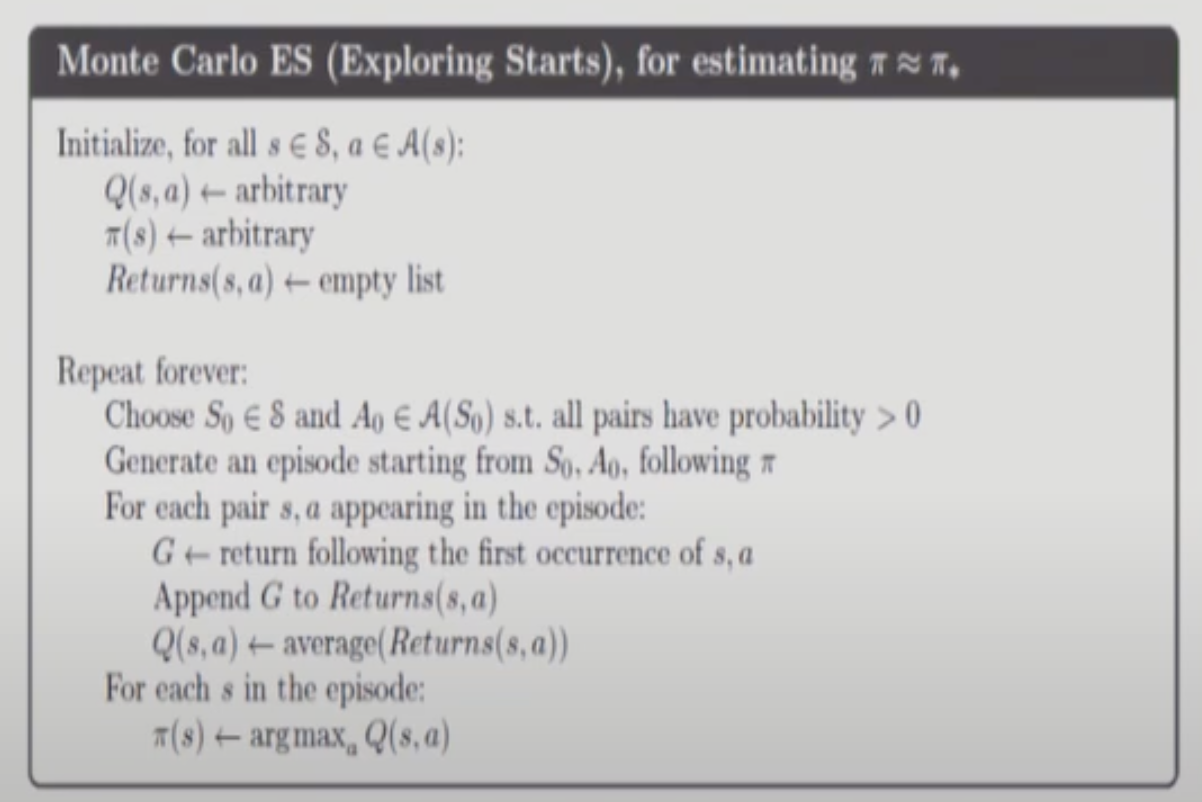 Episode 중간에 모든 action pair를 다 방문한다는 가정이다. 현실적으로는 비현실적인 가정이긴 하다.