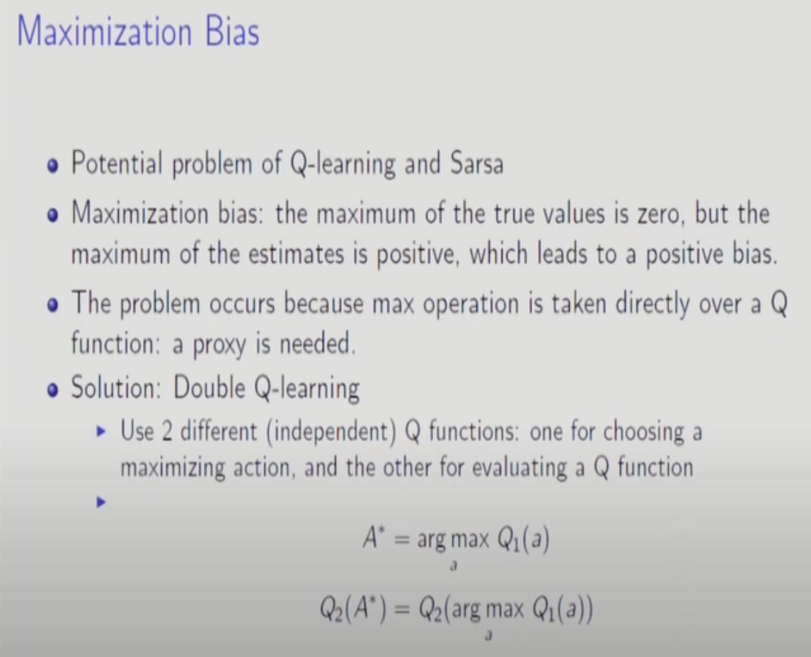 Cliff Example에서 다룬 단점 말고도 Q-Learning의 단점이 하나 더 있다. Maximization과정에서 Bias가 생기는 것이다.