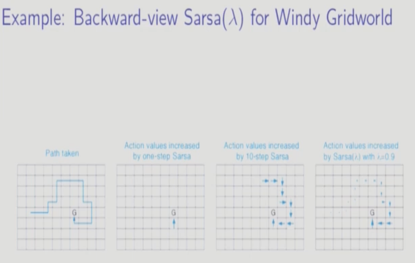 특히 다음과 같은 예제에서 SARSA가 더 빨리 수렴하는데 SARSA는 Q-function을 통해 1-Step 미래를 본다.