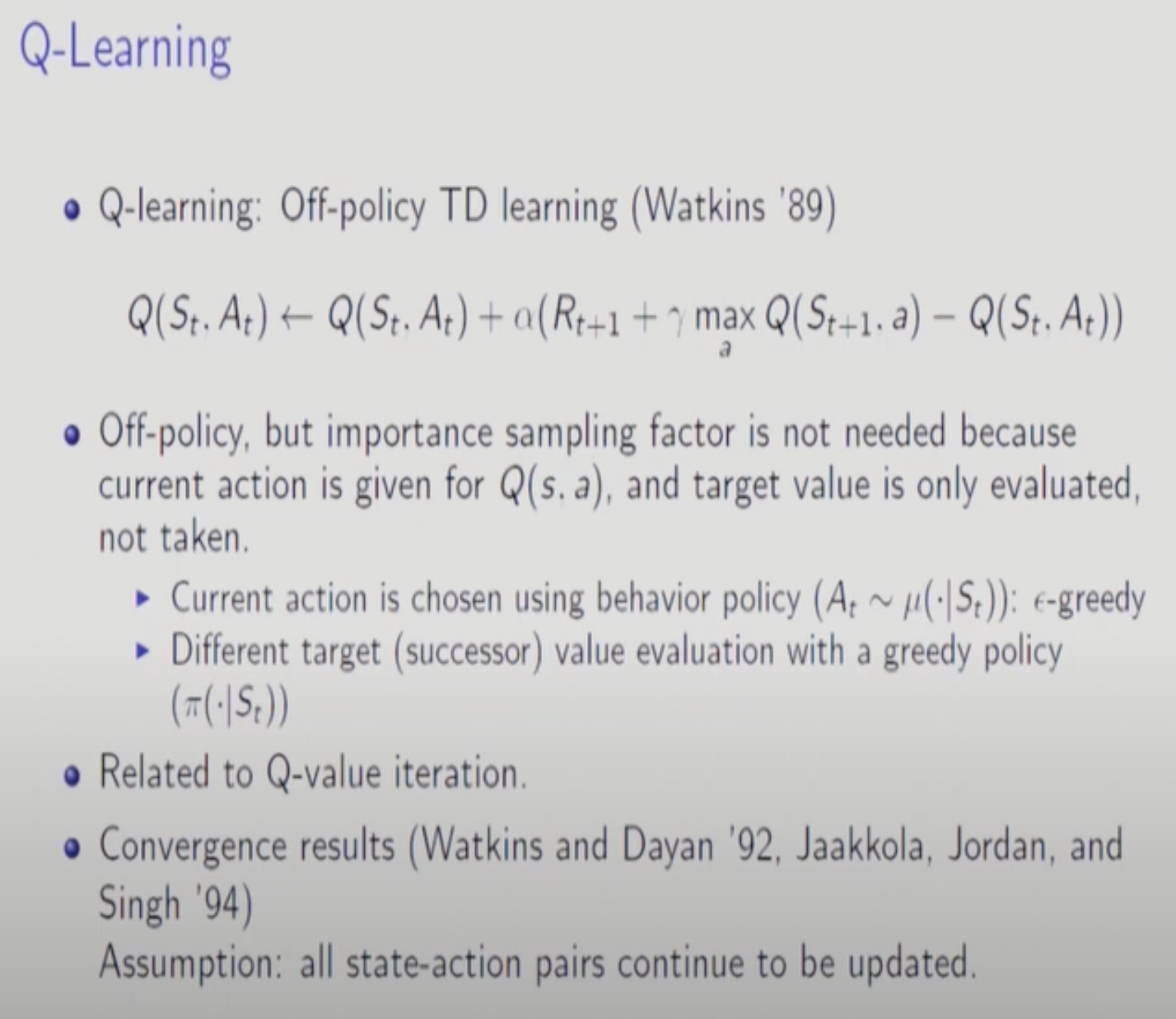 Value Iteration관점에서 1-Step 진행될 때마다 바로바로 Greedy한 update가 진행된다고 생각하면 된다.