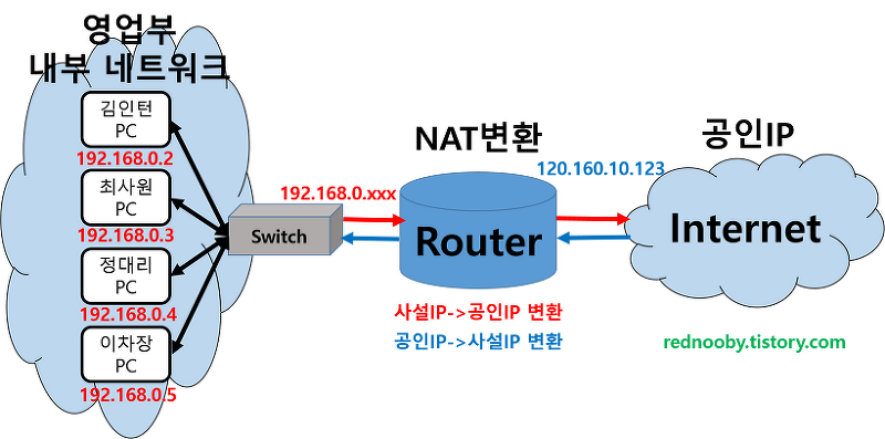 | 주소 할당 방식 | 클래스 기반 비순차 할당 | 네트워크 규모, 단말기 수에 따라 순차할당 |