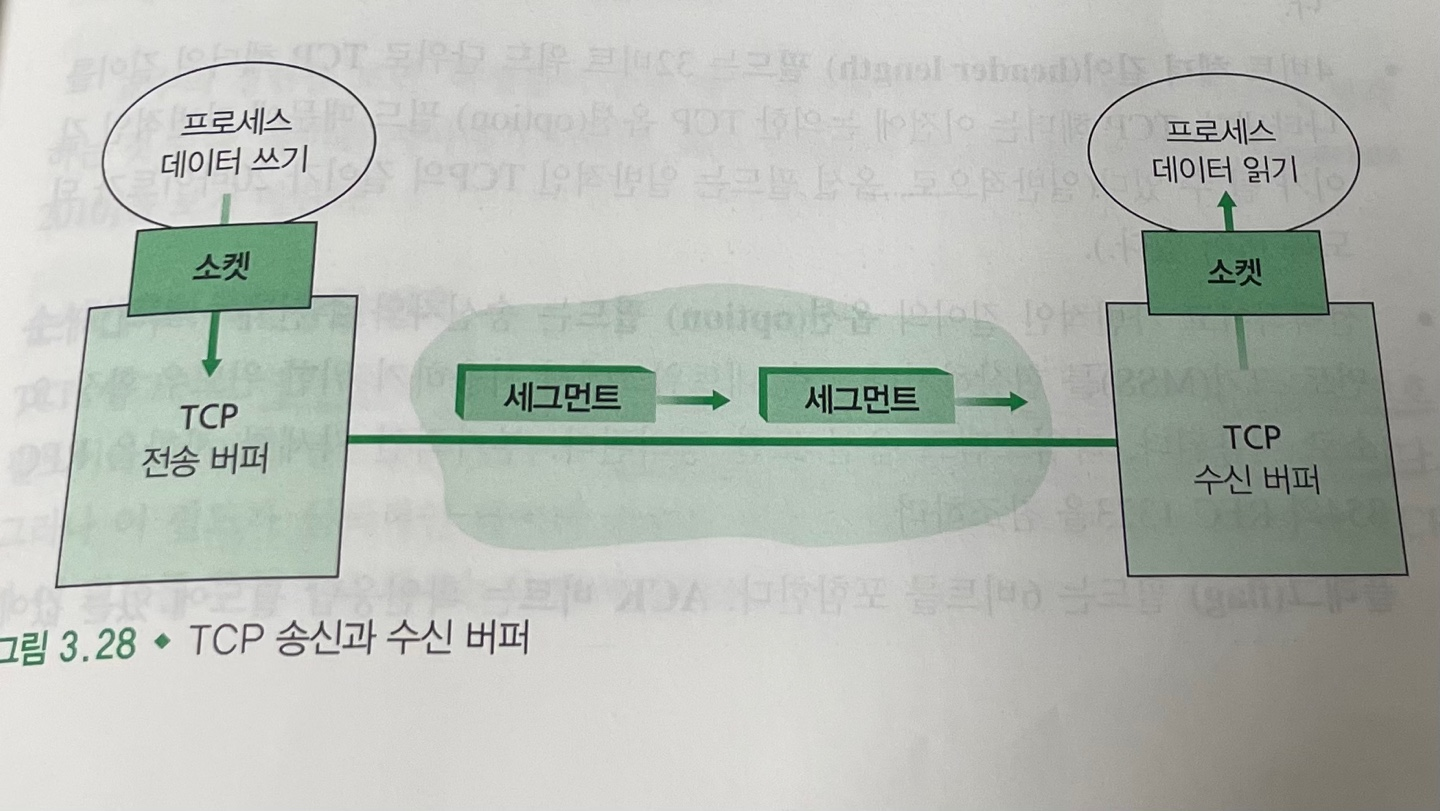 - TCP 연결의 양 끝은 각각 자신의 송수신 버퍼를 갖고 있다.