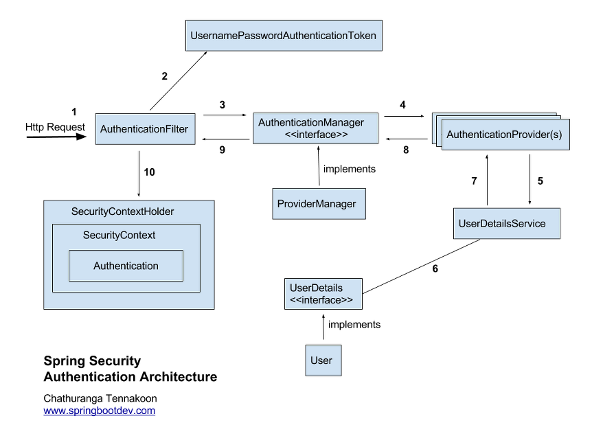 Spring Security의 사용자 인증 처리 과정은 다음과 같다.