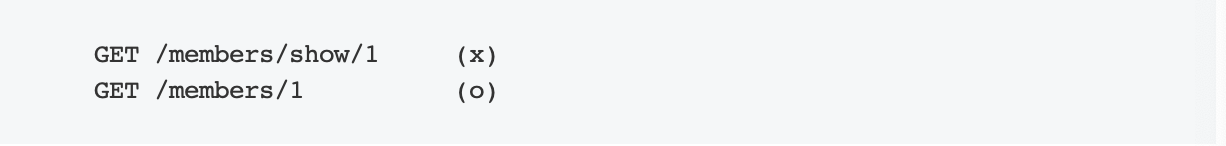 위와 같은 방식은 REST를 제대로 적용하지 않은 URL입니다. URL는 자원을 표현하는데 중점을 두어야 합니다.