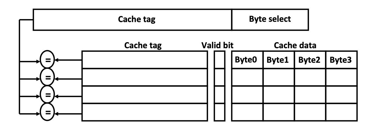 Direct Mapped 방식과 반대로, Fully Associative 방식은 하위 계층 메모리의 각각의 주소는 캐시의 모든 주소에 데이터를 배치할 수 있다.