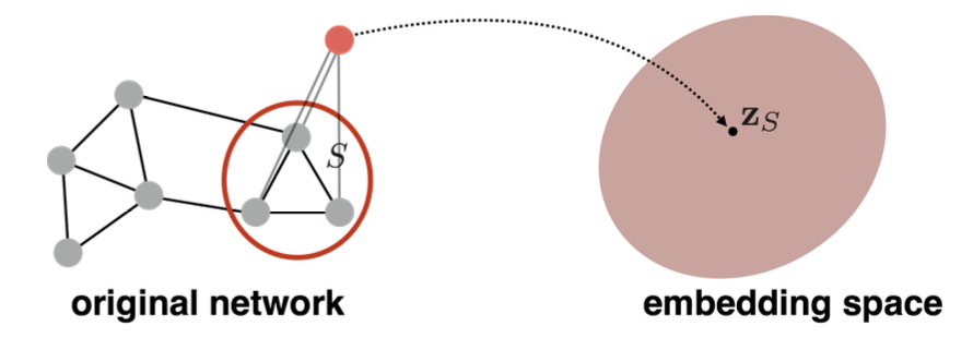 구하고자 하는 그래프(또는 Sub 그래프)와 연결되는 가상 노드(Virtual Node)를 만들고, 기존의 방식으로 해당 노드에 대한 Embedding Vector를 만드는 방식이다.