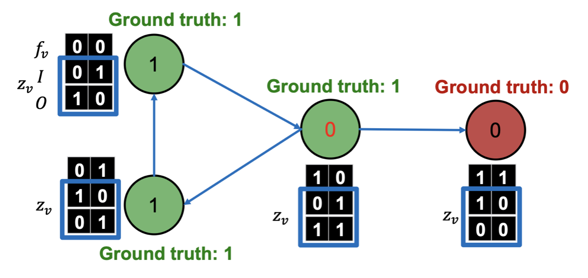 | Node 의 Message, Node 가 Class 에 속할 확률에 대한 추정치 | |