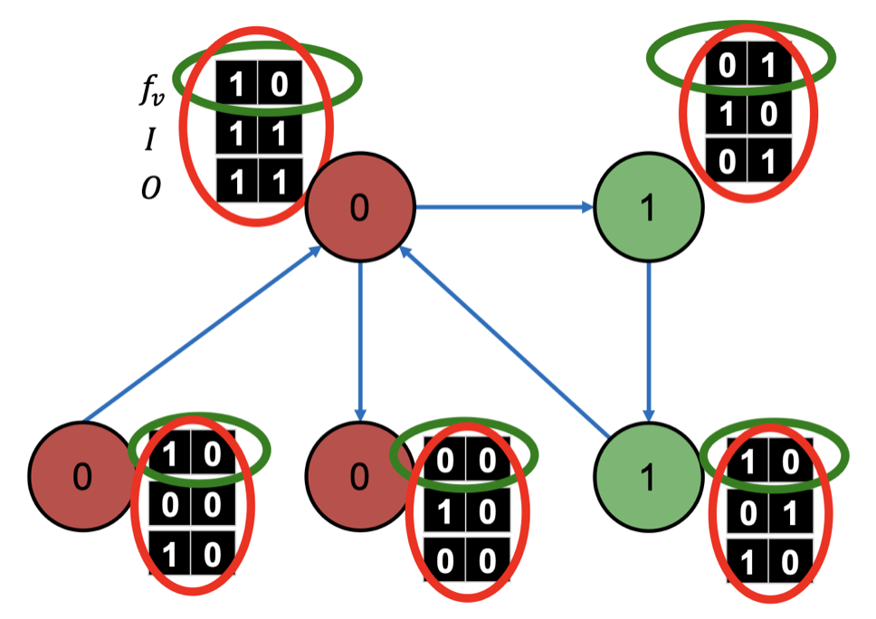먼저 는 이웃 Node의 Class 정보를 담고 있는 Vector이며 Incoming/Outcoming Node에 대해 구분하여 담고 있다. 만약 이면, Class=0 인 이웃 Node(Incoming)가 1개임을 의미한다.