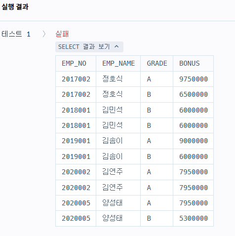 2. 메인 쿼리에서 case when 사용하여 보너스 금액 산정
