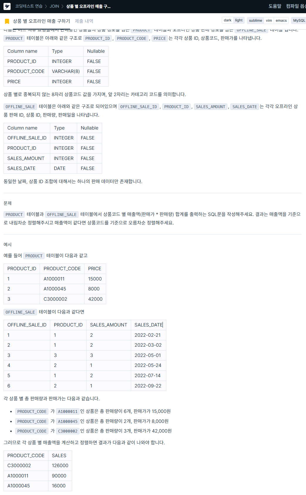 FROM product p JOIN offline_sale o ON p.product_id = o.product_id # PRODUCT_ID로 JOIN하기