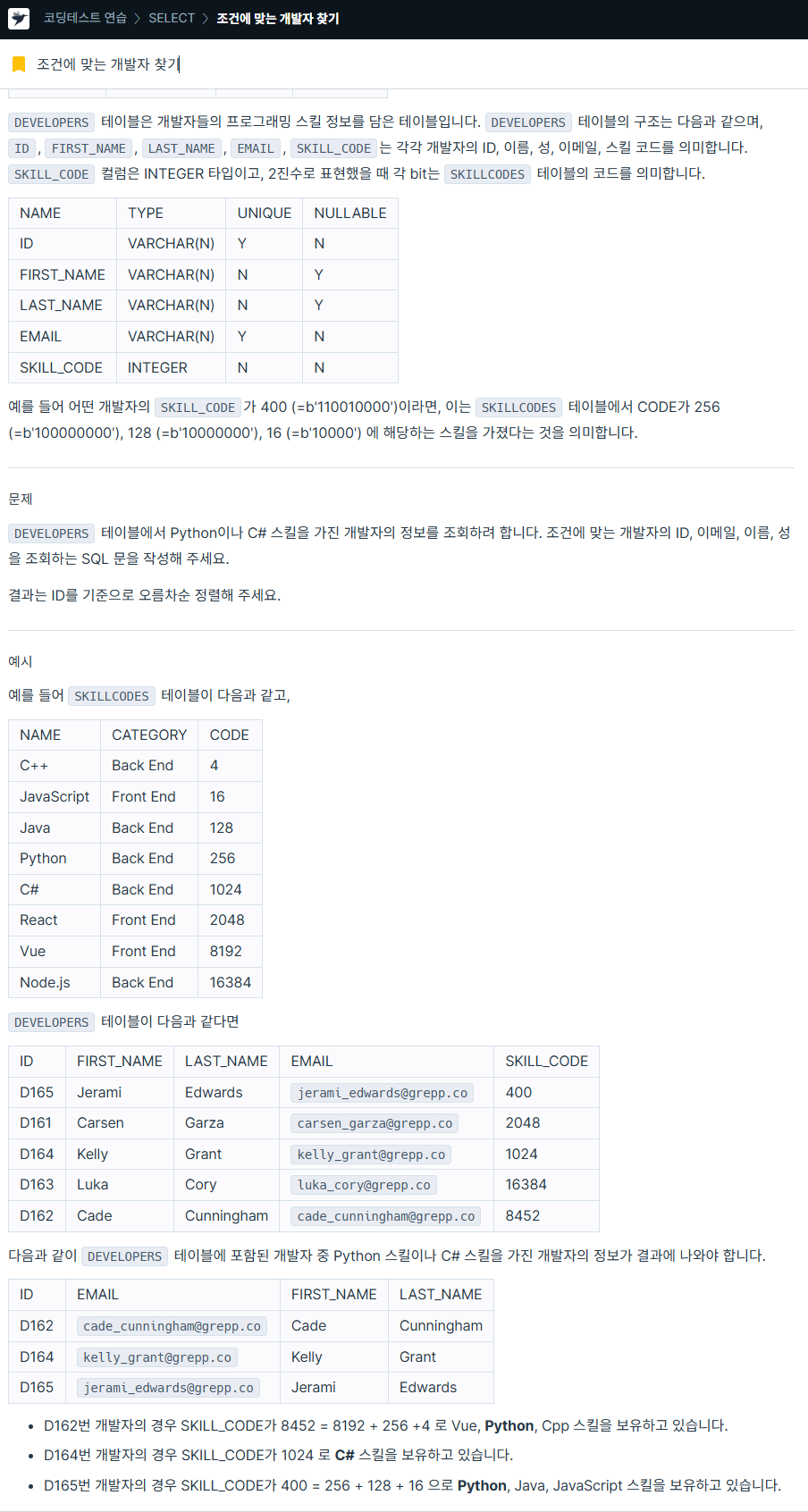 WHERE SKILL_CODE & (