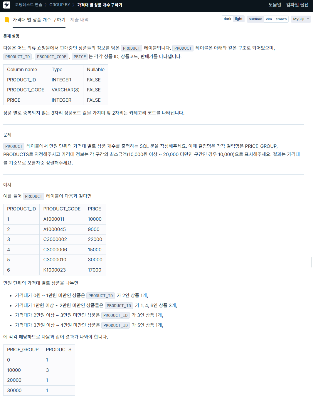 GROUP BY PRICE_GROUP