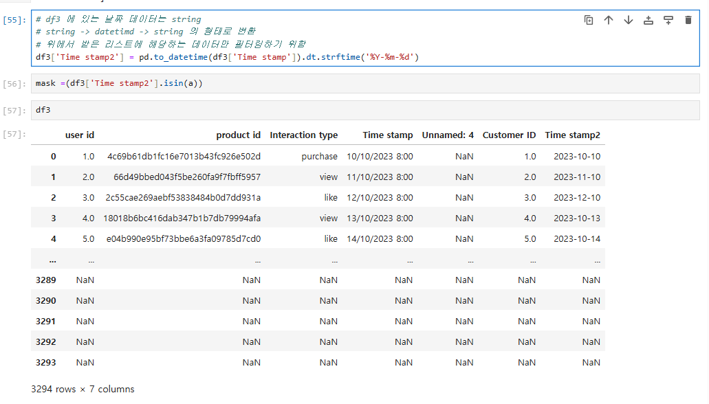 # df3 에 있는 날짜 데이터는 string