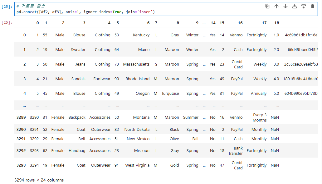 pd.concat([df2, df3], axis=1, ignore_index=True, join='inner')