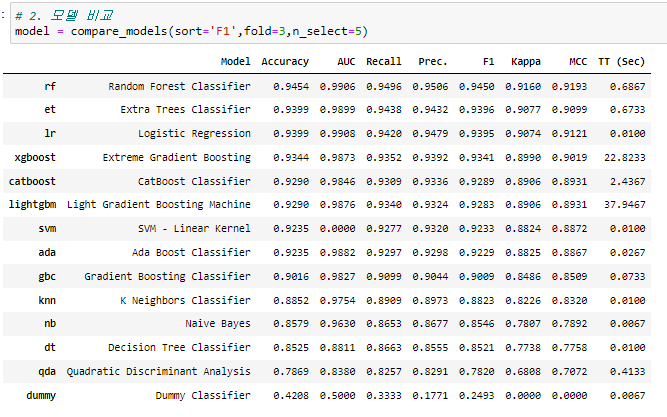 Pycaret에서 제공하는 model / score report