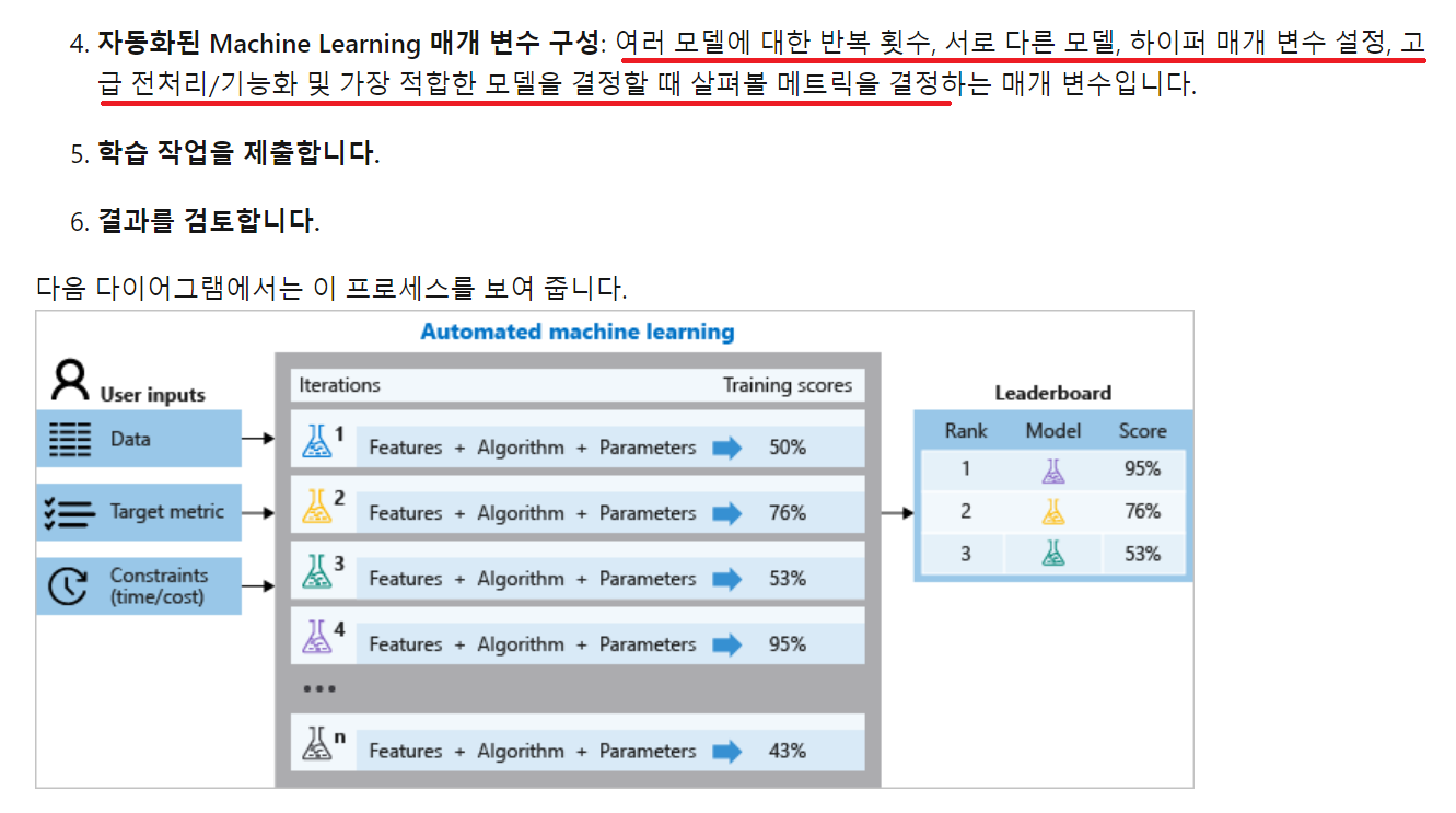 - AutoML은 머신러닝 작업을 자동으로 해주는 프로세스