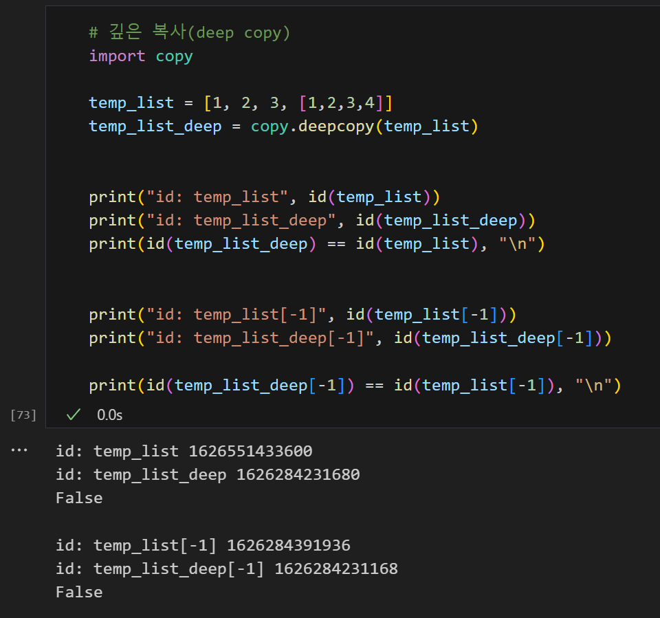 | 깊은 복사 | 다른 주소 | 다른 주소 |