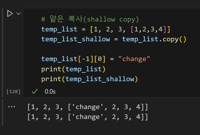 | 얕은 복사 | 다른 주소 | 같은 주소 |