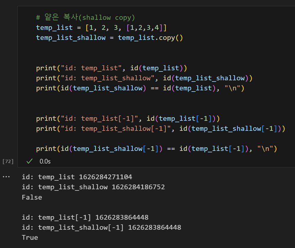 참조 복사보다는 느리지만깊은 복사보다는 빠름