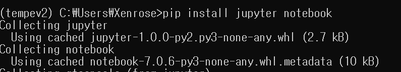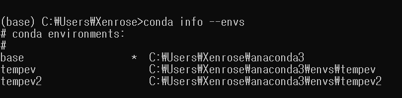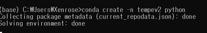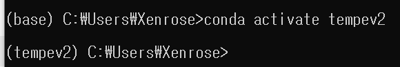 (프롬프트 옆에 base 였던게 가상환경 이름인 tempev2로 변경됨.)