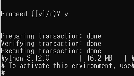 conda create -n 가상환경이름 python=버전 입력 및 Proceed y 입력