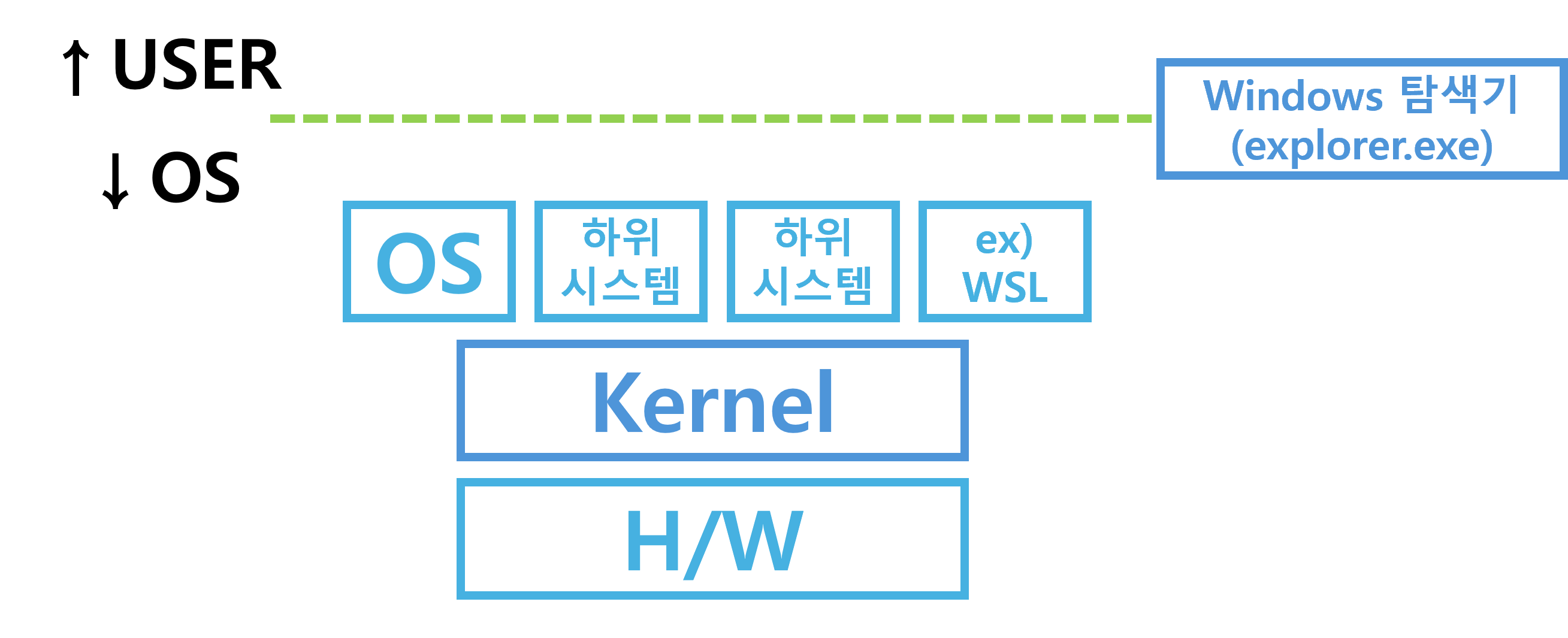 ▶ Hypervisor(ex. Hyper-v / Zen / KVM etc.)는 H/W와 Kernel 사이에 위치하여 H/W를 emulate ▶ Windows 탐색기(Windows Explorer)는 일종의 Shell