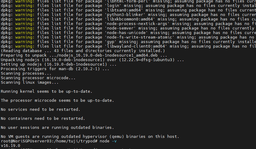 에러는 해결되고 node 버전을 확인하였을 때 정상적으로 16버전이 설치된 것을 확인할 수 있습니다.