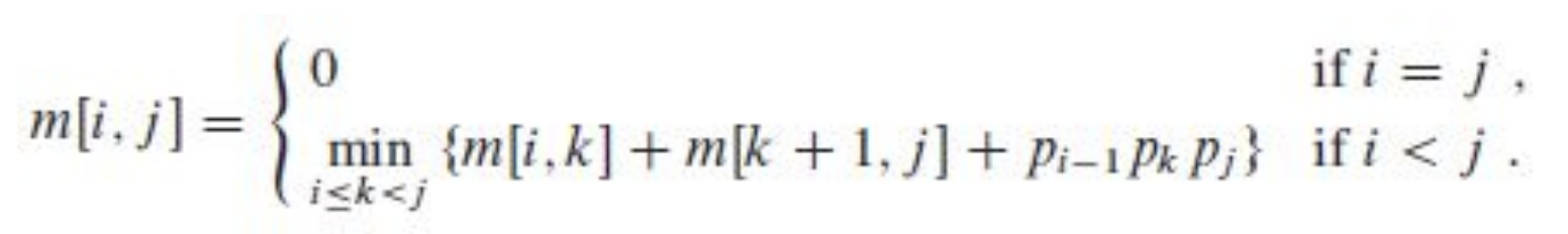 m[i,j]=m[i,k]+m[k+1,j]+pi−1⋅pk⋅pj