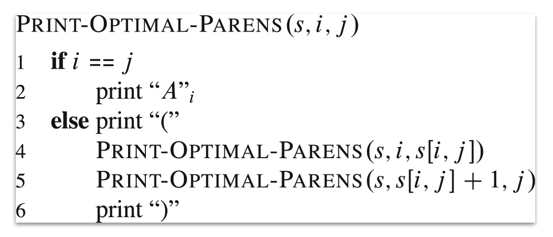 PRINT-OPTIMAL-PARENS(s, 1, 6)