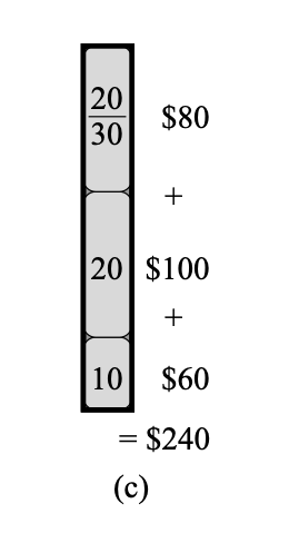 만약, 이 문제를 greedy algorithm으로 풀려고 한다면, 무게 당 가치가 높은 물건들을 먼저 선택하는 greedy choice를 하게 된다. 무게 당 가치를 따로 계산하면, 가 될 것이다. 위 문제에서 무게 당 가치를 계산해보면, 가 될 것이다. 그리고 무게 당 가치가 높은 순서로 가방에 넣게 되면 이므로, 가방에는 item 1과 item 2만 담아진다. 하지만 실제로 이것이 최적해일까? 그렇지 않다. 최적해는 item 2와 item 3을 가방에 담아, 가방에 남는 무게를 0으로 딱 맞춰서 총 가치 220을 담는 경우가 된다. greedy solution은 총 가치 160밖에 되지 못하고, 무게도 20이나 남는다. 이런 문제는 optimal substructure를 갖지만, greedy algorithm으로 풀 수 없기에 DP 기법을 활용해야 한다.