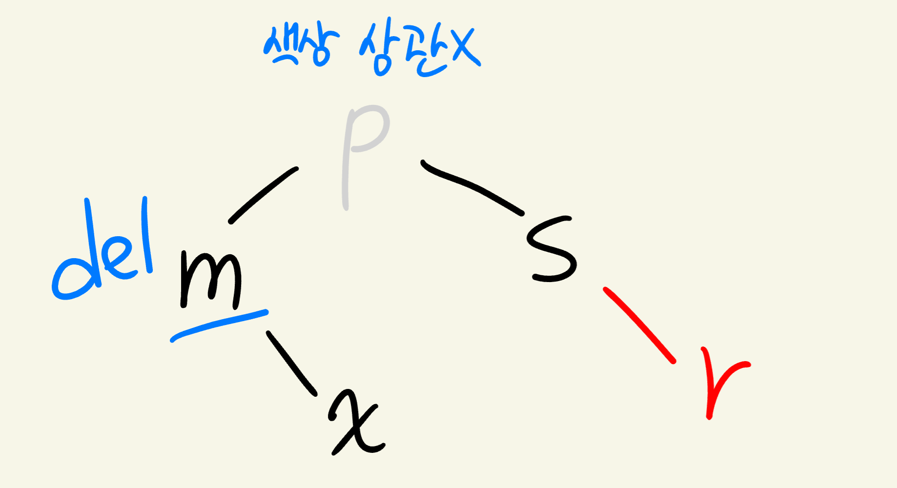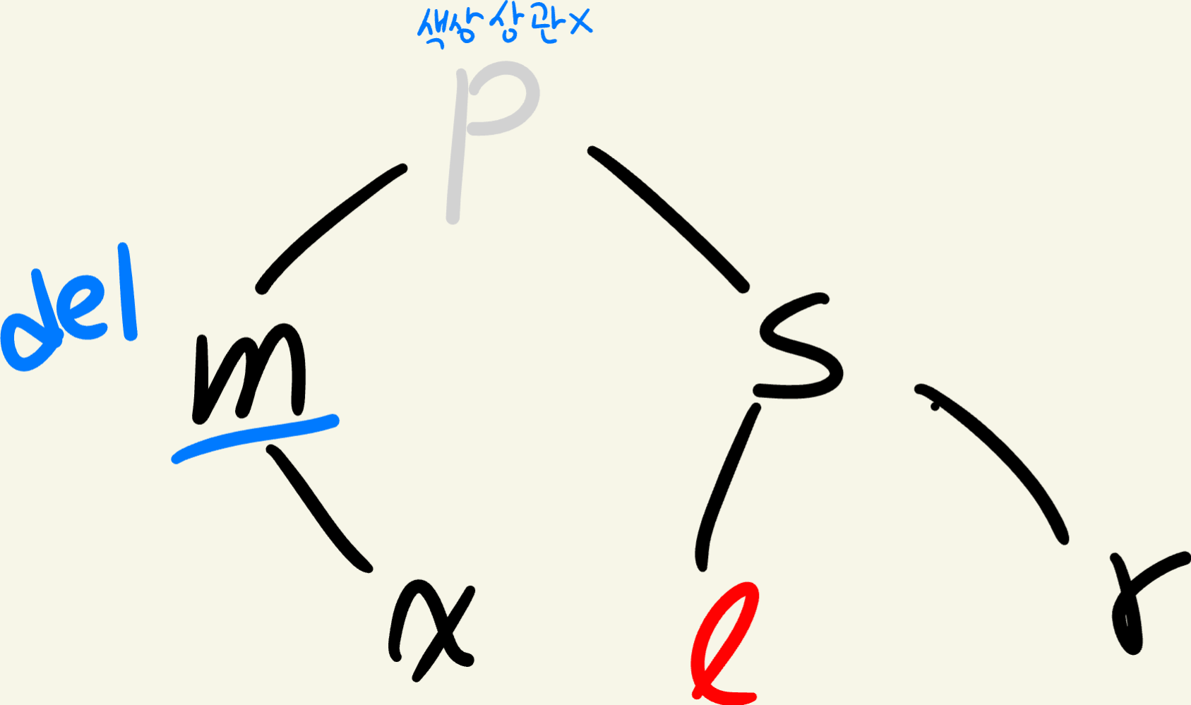 위 case에서 m을 삭제하게되면 형제(s)는 Black입니다.
