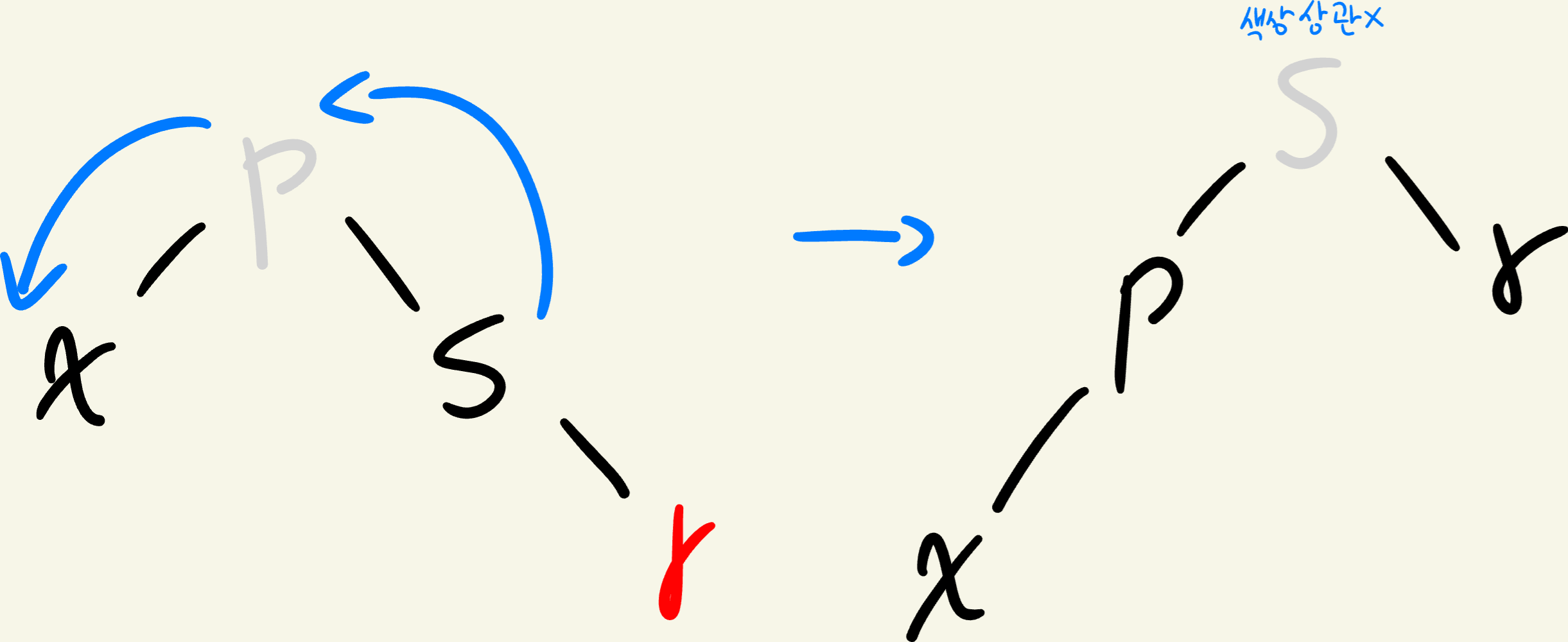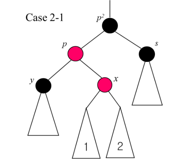 case2) s가 black이고 x가 p의 왼쪽 자식 (LL case)