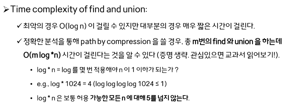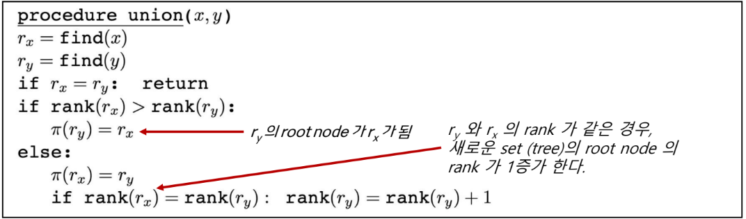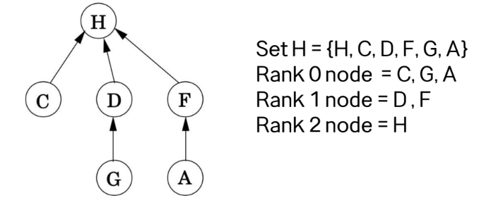 즉, 트리의 높이를 관리하기 위해 각각의 node에 대해 해당 tree를 root로 가지는 (rooted)subtree의 height를 rank라 정의해서 union by rank 방법이다.