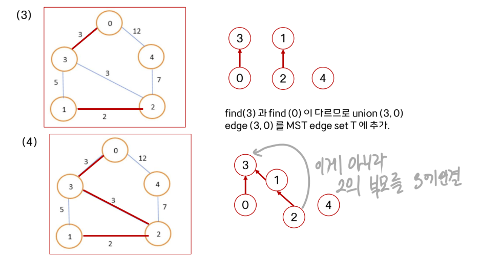 그리고 여기서 2와 3을 연결해줄 때 union(2, 3)으로 진행한다.