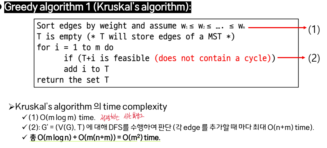 이렇게 크루스칼 알고리즘을 구현하면 기존 시간 복잡도인