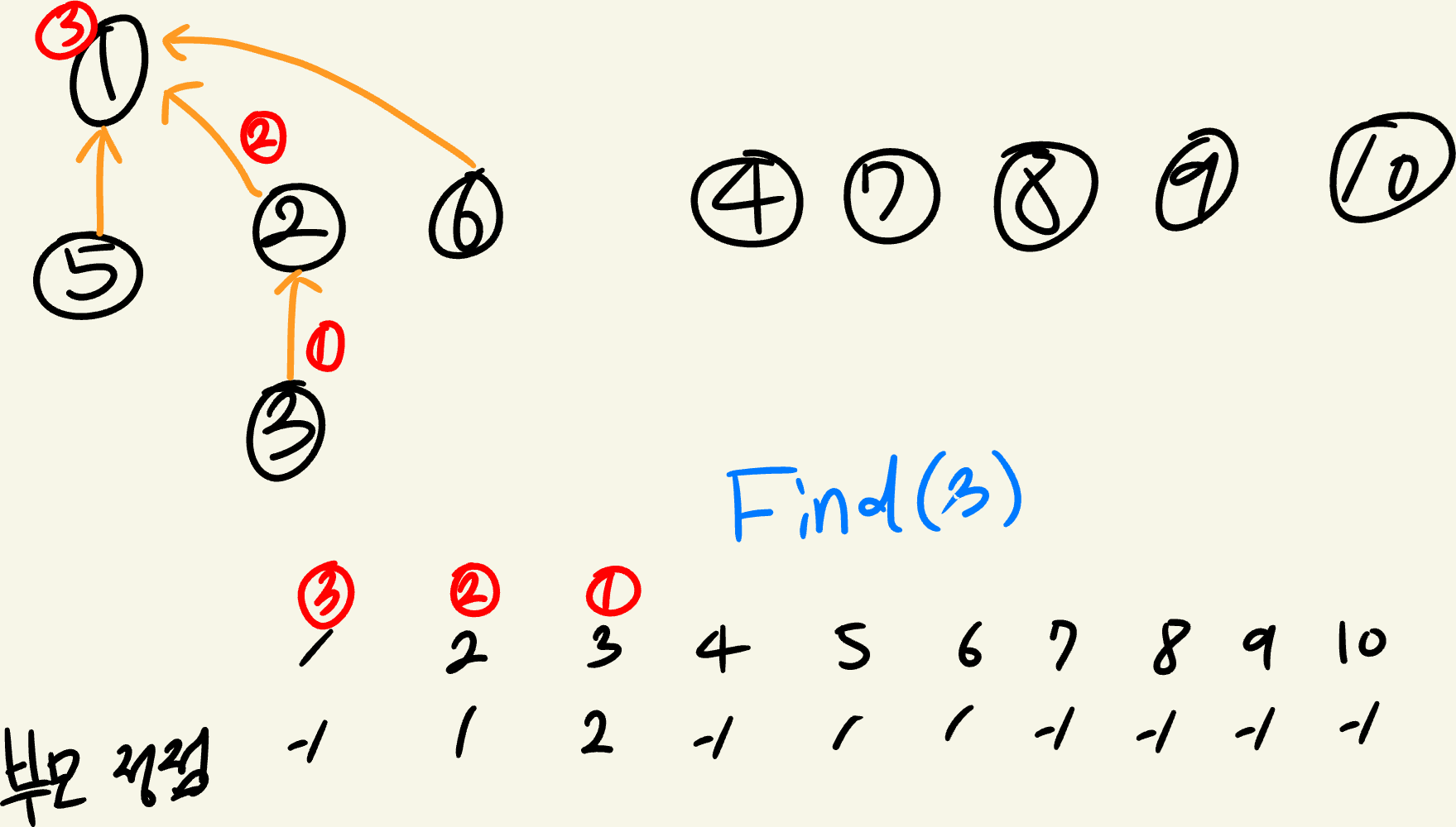 이렇게 루트노드까지 반복하여 find를 진행한다.