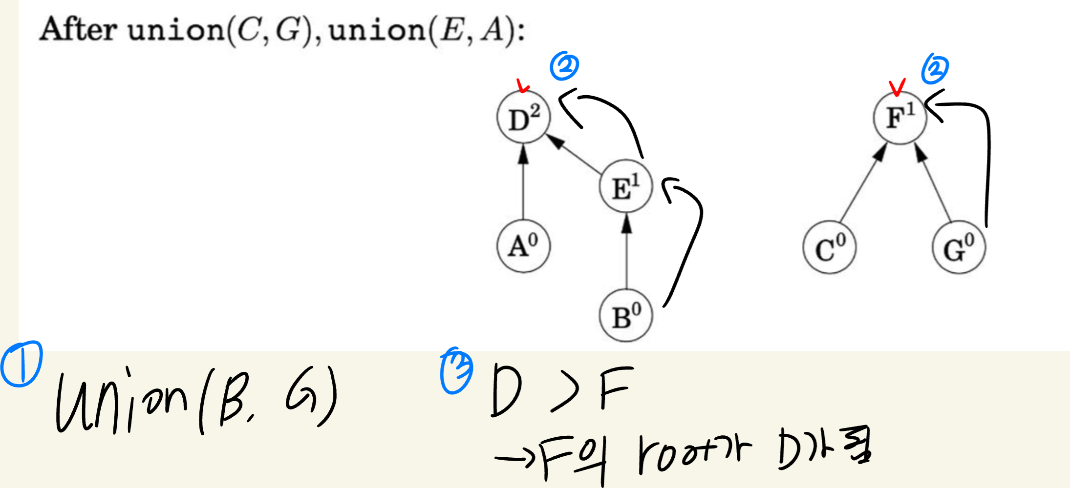 이렇게 union을 시킬 때 root 노드의 rank를 비교한다.