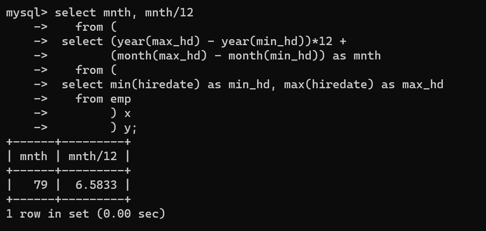 - 위와 같이 계산해주면 두 차이의 개월수를 구할 수 있는데, 거기에 12를 곱해주면 연수도 구할 수 있다.