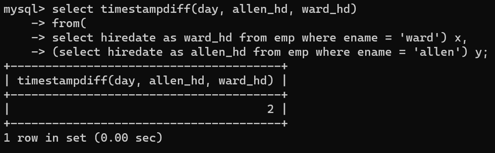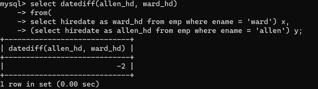 - datediff는 두 날짜의 차이를 day를 기준을 계산해준다.