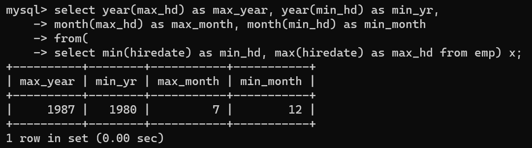 - datediff와는 다르게 날짜 기준에 year, month 등을 넣어서 다양한 값을 출력할 수 있다.