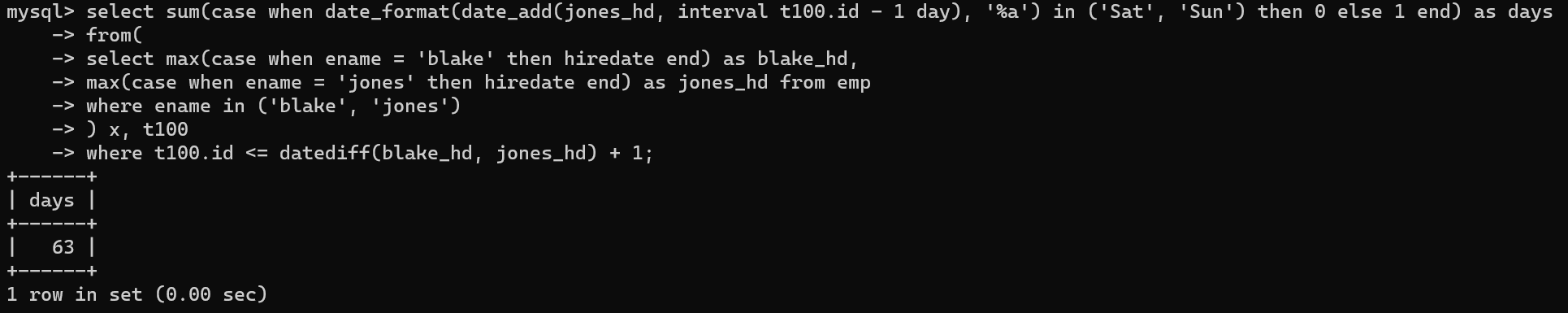 - where 조건문에는 두 날짜의 차이를 1만큼 더해줘서 날짜의 차이만큼만 더해질 수 있도록 조건을 걸었다.