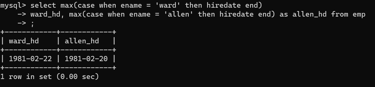 - 먼저 차이를 구할 두 날짜의 쿼리를 select로 뽑아서 데이터를 확인했다.