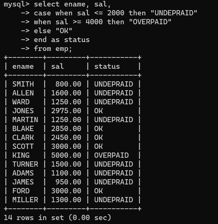 - case문은 조건을 통해 값을 출력할 수 있다.
