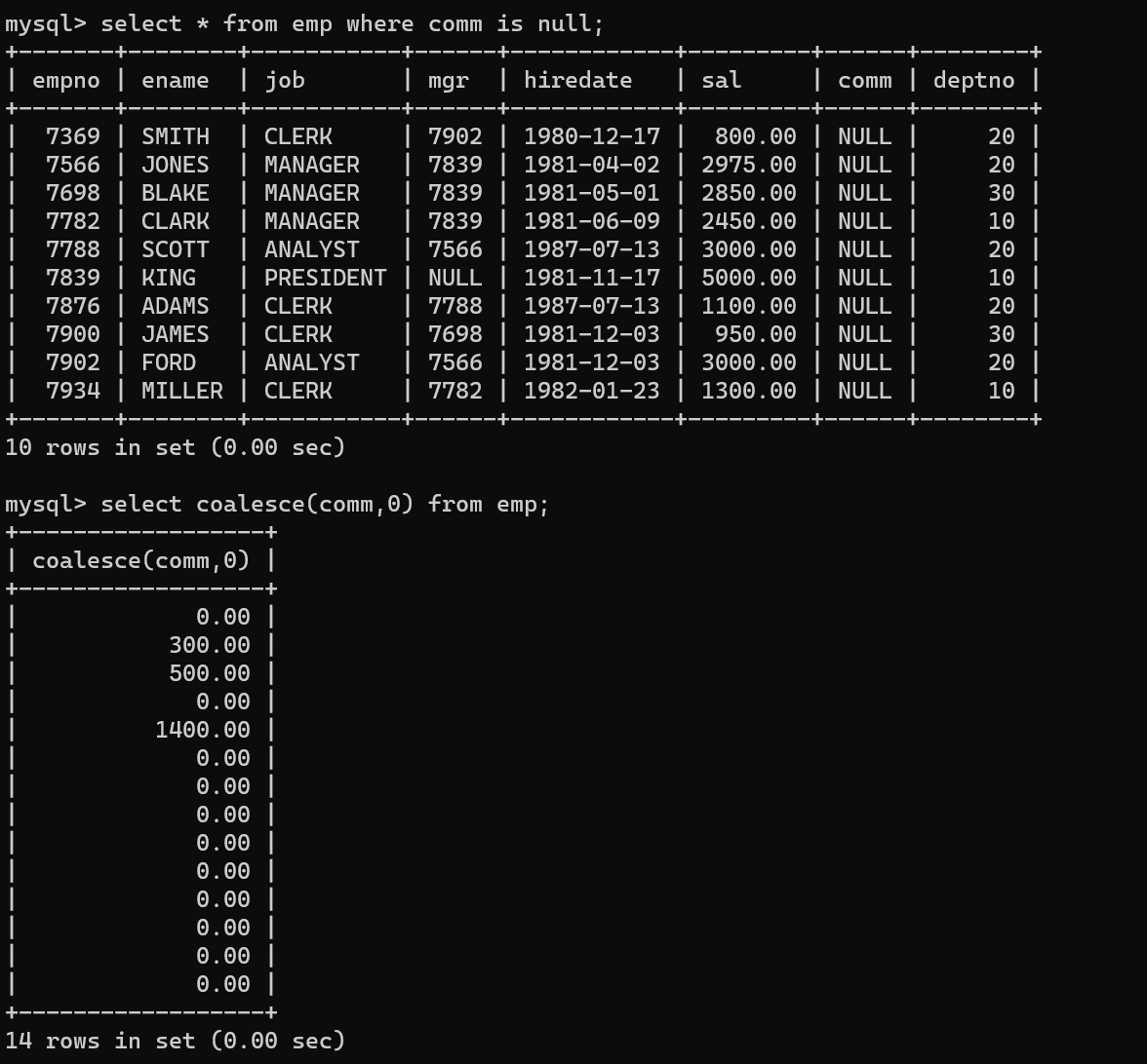 - 그리고 밑에 coalesce함수는 null값을 바꿔주는 기능이 있다