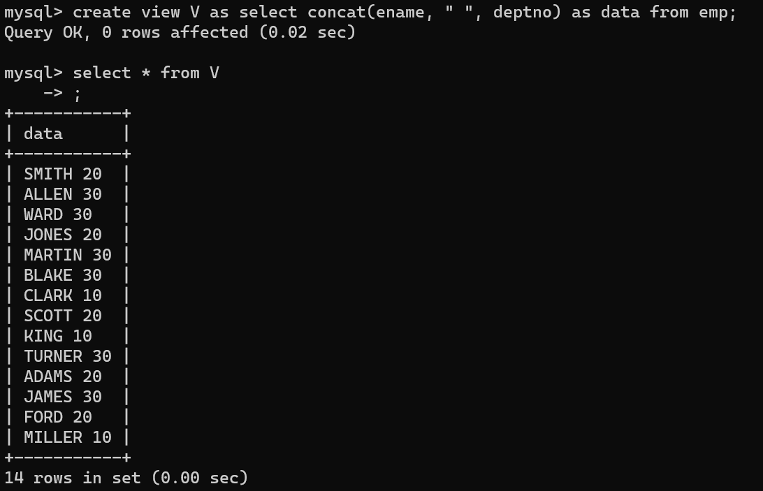 - 다음 기능은 concat이다. 아 참고로 다양한 sql tool마다 문법의 차이가 있는데, 여기서는 mysql8.0을 사용한다.