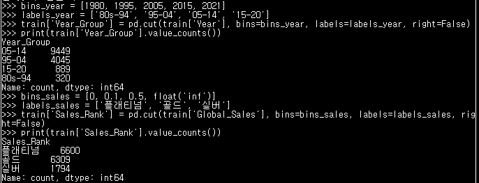 train['Sales_Rank'] = pd.cut(train['Global_Sales'], bins=bins_sales, labels=labels_sales, right=False)